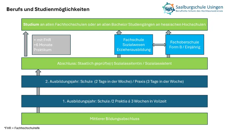 Daher empfehlen wir – auch im Sinne Ihrer langfristigen Perspektiven und Vergütung – im Anschluss den nächsten Qualifikationsschritt, gerne an der Saalburgschule, z. B. die Fachschule für Sozialpädagogik (Erzieherin/Erzieher) oder die Fachschule für Heilerziehungspflege. Gleichwohl ist der direkte Berufseinstieg als „Fachkraft zur Mitarbeit“ möglich und wird im Praxisfeld geschätzt.
